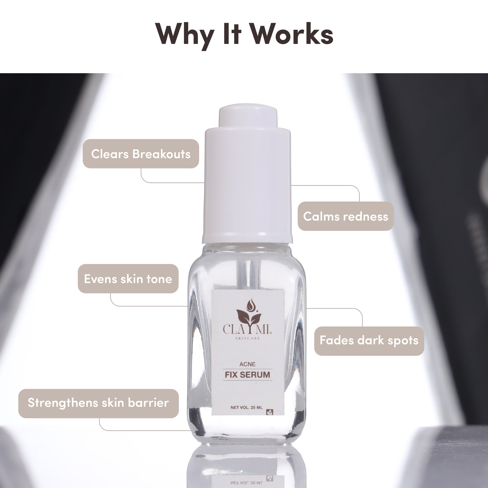I wanted to create something that works hard on acne without being harsh on your skin and that’s how Claymi Acne Fix Serum came to life.